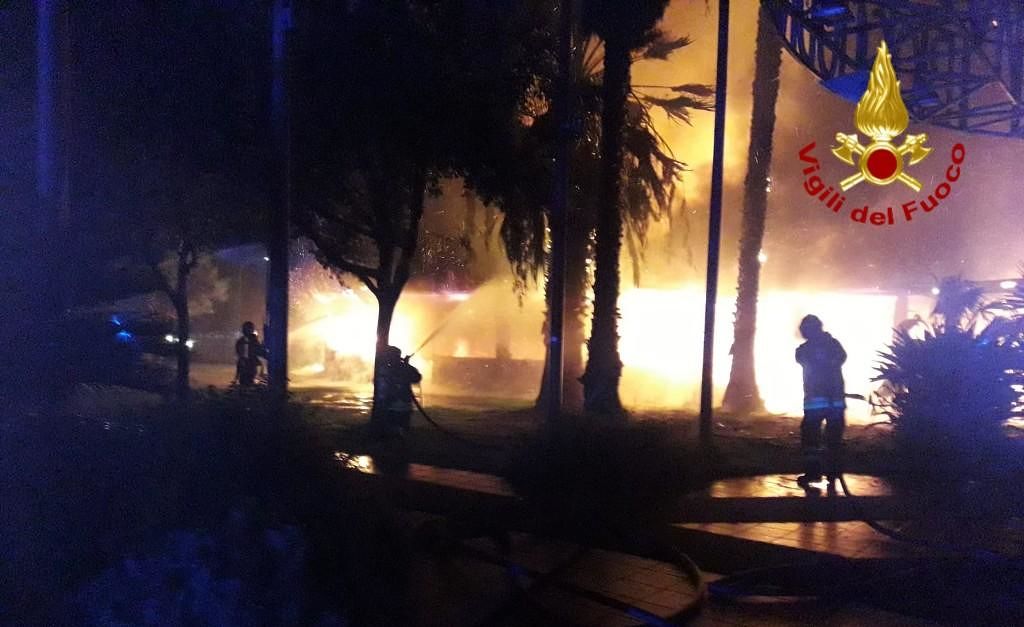 Cagliari, vasto incendio in un locale adibito a pizzeria, a fuoco l’intera struttura: i Vigili del Fuoco sul posto con 5 automezzi. Danneggiato completamente il circolo privato “Scacco Matto y Sueno” e parzialmente il vicino circolo privato “Bocciofilo di Cagliari”.
