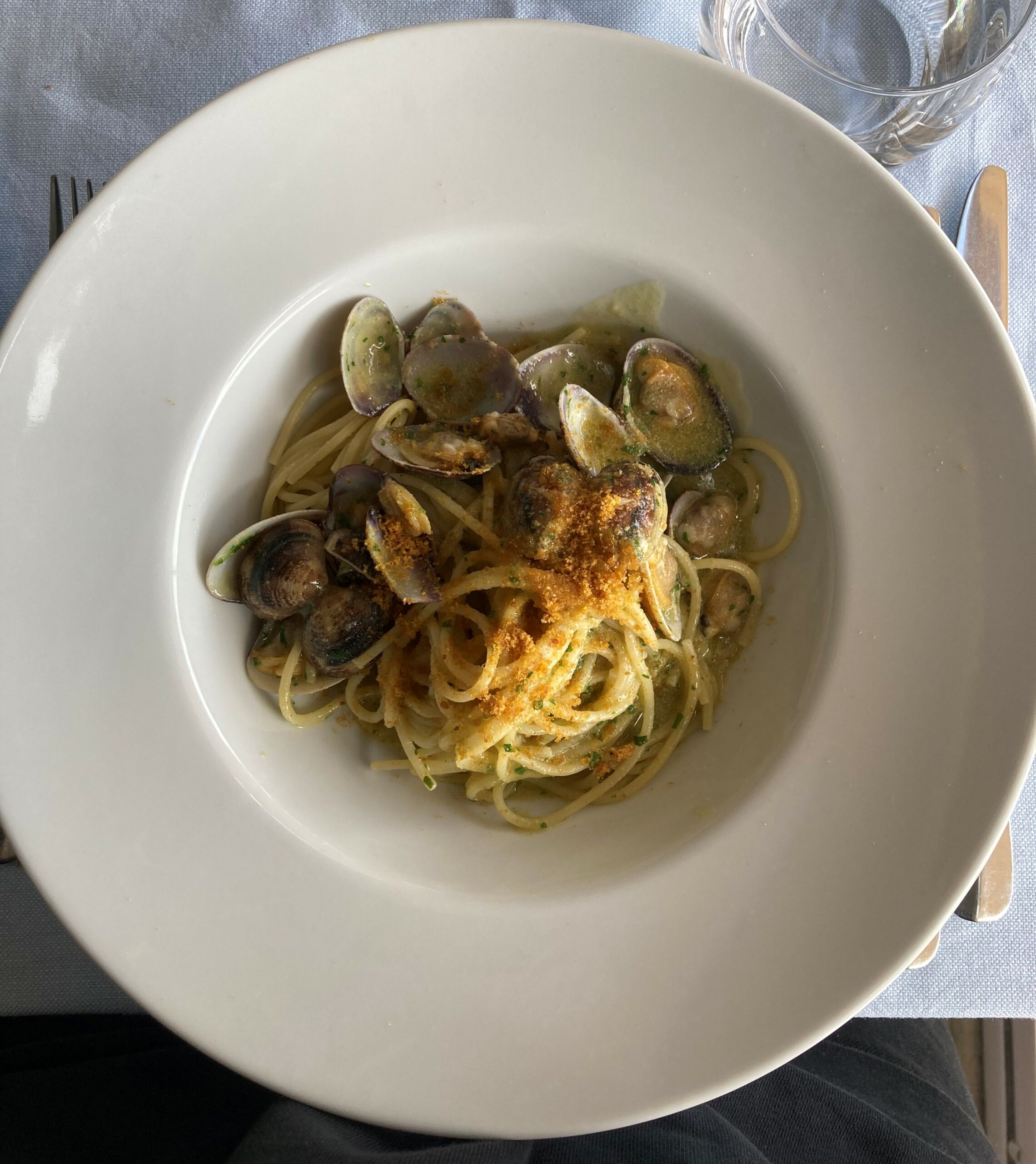 A completare il tutto un servizio attento, puntuale e cortese. Da non perdere tra i vari piatti del menù, gli spaghetti bottarga e arselle, la fregola e i calamari fritti.