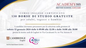 L’Academy, rinomata scuola di inglese, unico Centro Esami Autorizzato Cambridge English a Cagliari e nel Centro e Sud Sardegna, ha annunciato un’iniziativa straordinaria volta a promuovere la conoscenza della lingua inglese nel territorio sardo. L’istituto finanzierà 130 borse di studio completamente gratuite, che includono un corso di inglese e l’iscrizione all’esame internazionale Cambridge English per i corsi finalizzati al conseguimento delle certificazioni linguistiche.