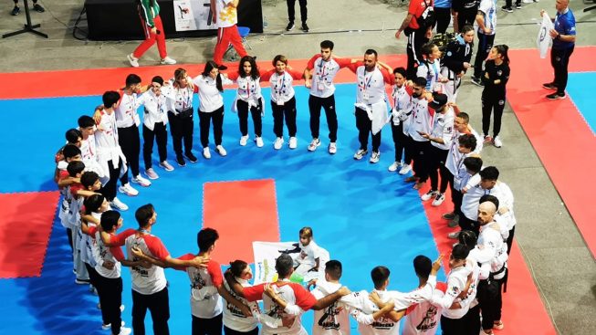 La prima medaglia d’oro è stata conquistata nelle forme a squadre, categoria cadetti cinture nere, con Nicola Dessì, Mattias Caboni, Matteo Piras, Filippo Mascia e Mattia Orrù che si impongono in finale sulla delegazione uzbeka.