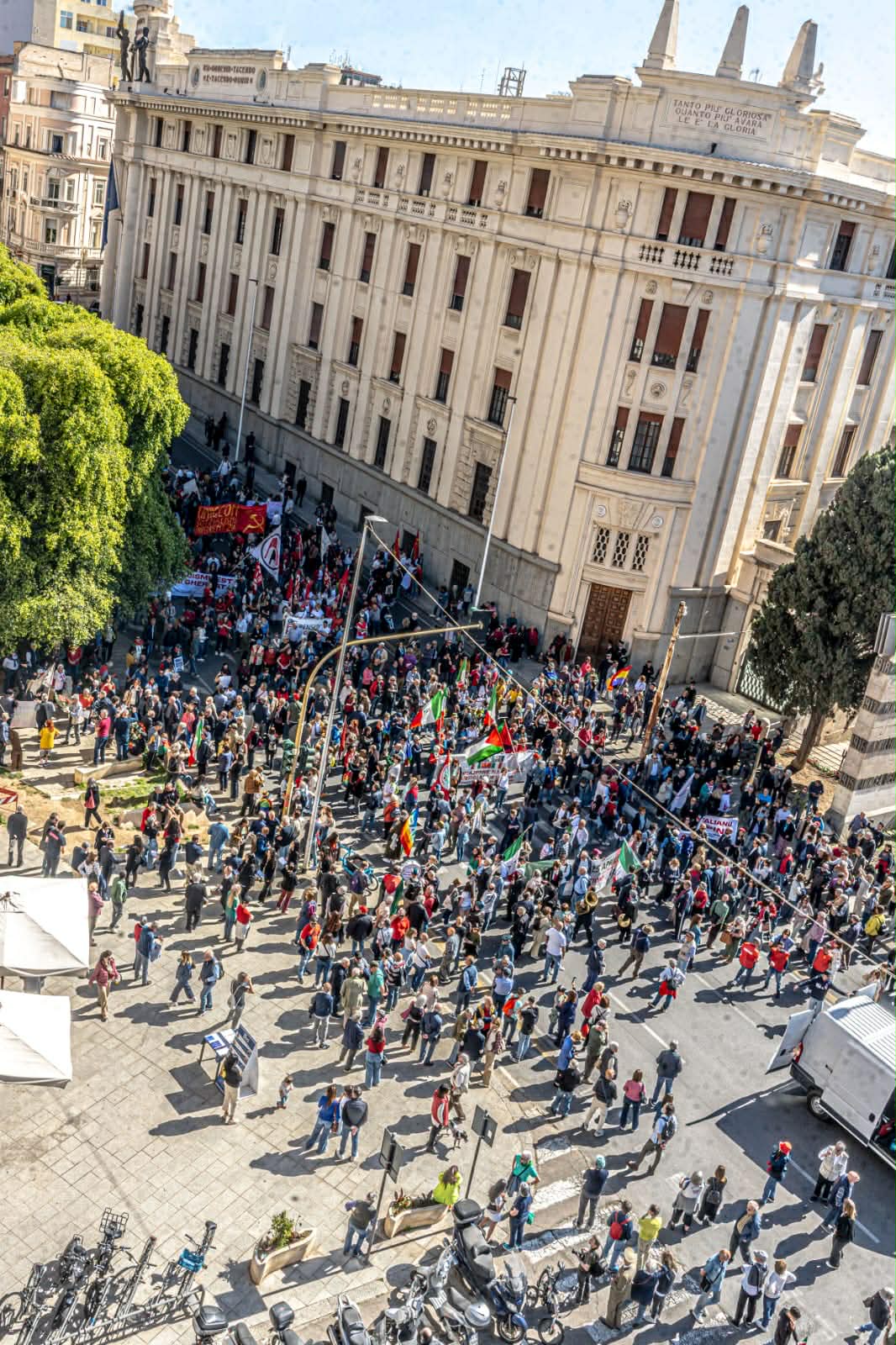 Tanti i giovani che sono voluti essere presenti in un corteo dove sono comparsi cartelli contro i conflitti internazionali e a difesa della Costituzione, con numerose bandiere arcobaleno. La giornata si è conclusa con interventi dal palco e il canto di ‘Bella ciao’ in Piazza del Carmine.