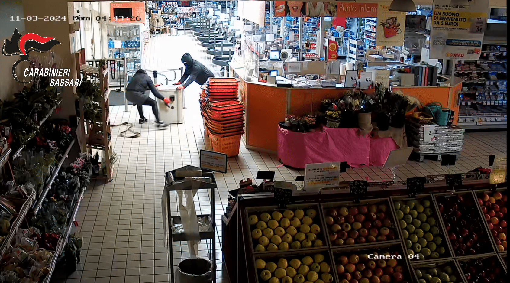 Poco prima del furto gli uomini erano soliti rubare in loco due autovetture, nello specifico un’Alfa Romeo Giulietta utilizzata per darsi alla fuga e un’altra autovettura o un furgone da impiegare come ariete per sfondare le vetrate delle attività commerciali.