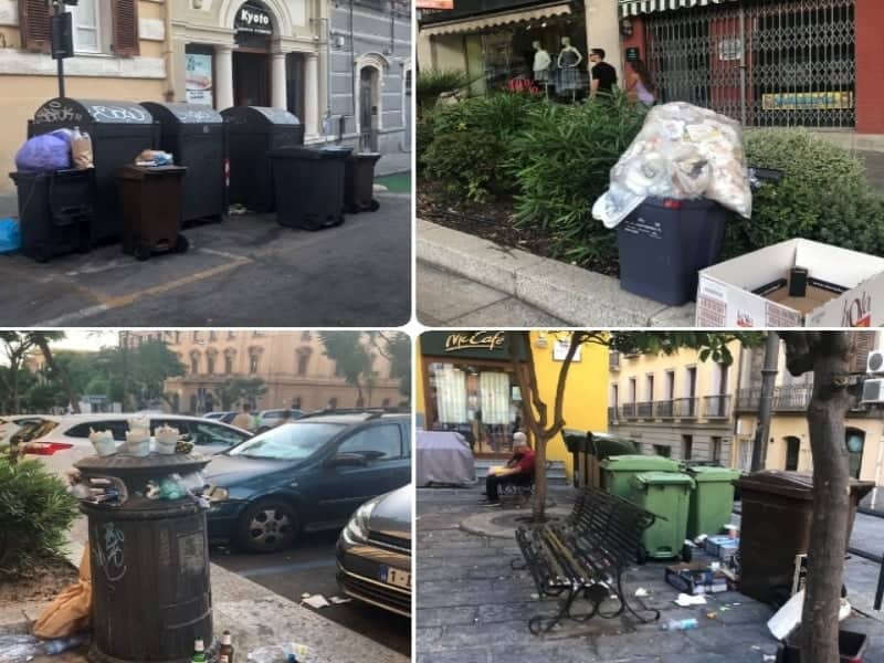 Un servizio di porta a porta non eccellente, strade luride e puzzolenti, montagnette di sacchetti dal pieno centro della movida sino alla periferia. A Cagliari il benvenuto ai turisti che si addentrano nel centro storico lo danno i rifiuti, purtroppo. E non è certo peccato pensare che, a vacanza terminata, avranno un ricordo di una città sporca e poco curata. Dal Comune, sinora, la risposta è stata ben poco incisiva: qualche strada ripulita la notte con potenti getti d’acqua, ma qualche rondine non fa certo primavera. Anzi, con le temperature record delle ultime settimane a regnare è soprattutto la puzza. E i cagliaritani stessi ci mettono la faccia e raccontano dei tanti disagi che vivono. Valentina Boi ha un appartamento al terzo piano di una palazzina di via Angioy: “Sono esasperata, come i miei vicini, per lo schifo delle strade, veramente luride. Sicuramente la raccolta differenziata non sta funzionando, devi tenerti l’umido anche per quattro giorni di fila e lo accumuli soprattutto nei weekend. Stiamo andando incontro ad una situazione di igiene molto precaria”, osserva”, presto dovremo chiamare l’Assl. Potremmo andare alle isole ecologiche, ma la verità è che tutti i disagi come al solito li paghiamo noi cittadini, che già versiamo la Tari, per un servizio che fa acqua. Le strade in granito sono ormai macchiate irreversibilmente dai liquidi che fuoriescono dai mastellim, per non parlare di chi vomita la notte o dei padroni dei cani che non ripuliscono la pipì dei loro animali. Le blatte sono entrate anche nella mia casa, una è riuscita ad arrivare oltre la finestra. Sono stata a Lecce, lì la città è pulita. I nostri amministratori, il sindaco, perchè non chiedono al primo cittadino di Lecce come si fa a tenere pulita una città. A parole siamo tutti d’accordo sulla bellezza di Cagliari, vogliamo i turisti ma anche loro, come noi, hanno gli occhi per vedere lo scempio dei rifiuti”.