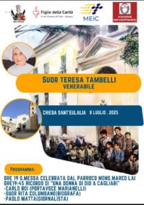 Sarà così articolata: alle ore 19 la Santa messa nella chiesa di S. Eulalia, celebrata dal parroco mons. Marco Lai, a seguire un incontro-dibattito in Teatro sulla figura di suor Teresa Tambelli, introdotto dalle relazioni di Carlo Boi (portavoce dei marianelli), suor Rita Columbano (biografa), Paolo Matta (giornalista).