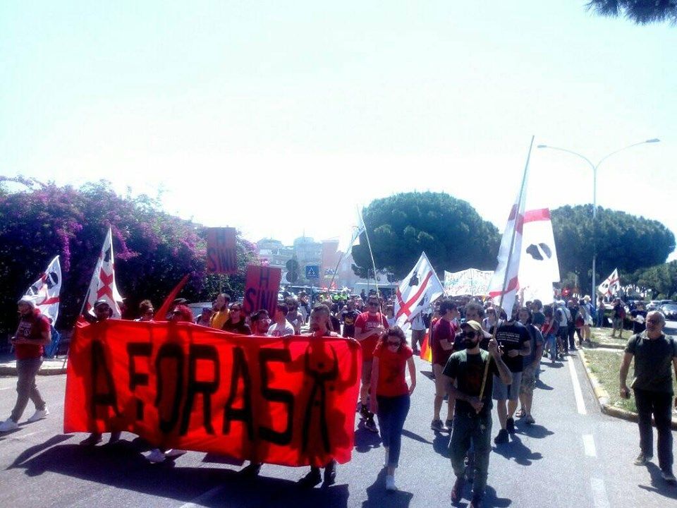 E’ partito questa mattina alle 11:30 da piazza dei Centomila il corteo antimilitarista organizzato dal collettivo A Foras. In centinaia si sono dati appuntamento per protestare contro l’occupazione militare della Sardegna, il transito nei comuni e nei porti sardi di armi, ordigni e mezzi bellici. Questi i motivi della protesta che li vedrà protagonisti nella giornata di oggi a Cagliari.