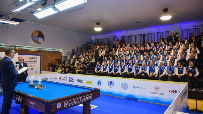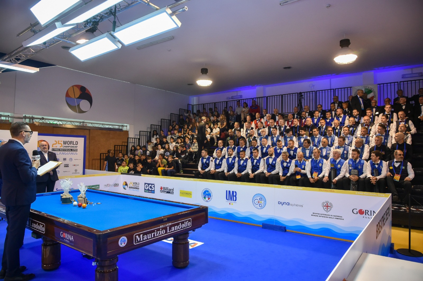 I primi ad animare il palazzetto e a dare il via alla 25^ Edizione del Campionato del Mondo sono stati due azzurri: Ciro Davide Rizzo e Andrea Martinelli, qualificato dalle selezioni CEB. Il Campione del mondo in carica Rizzo ha chiuso alla bella, conquistando la prima partita della giornata.