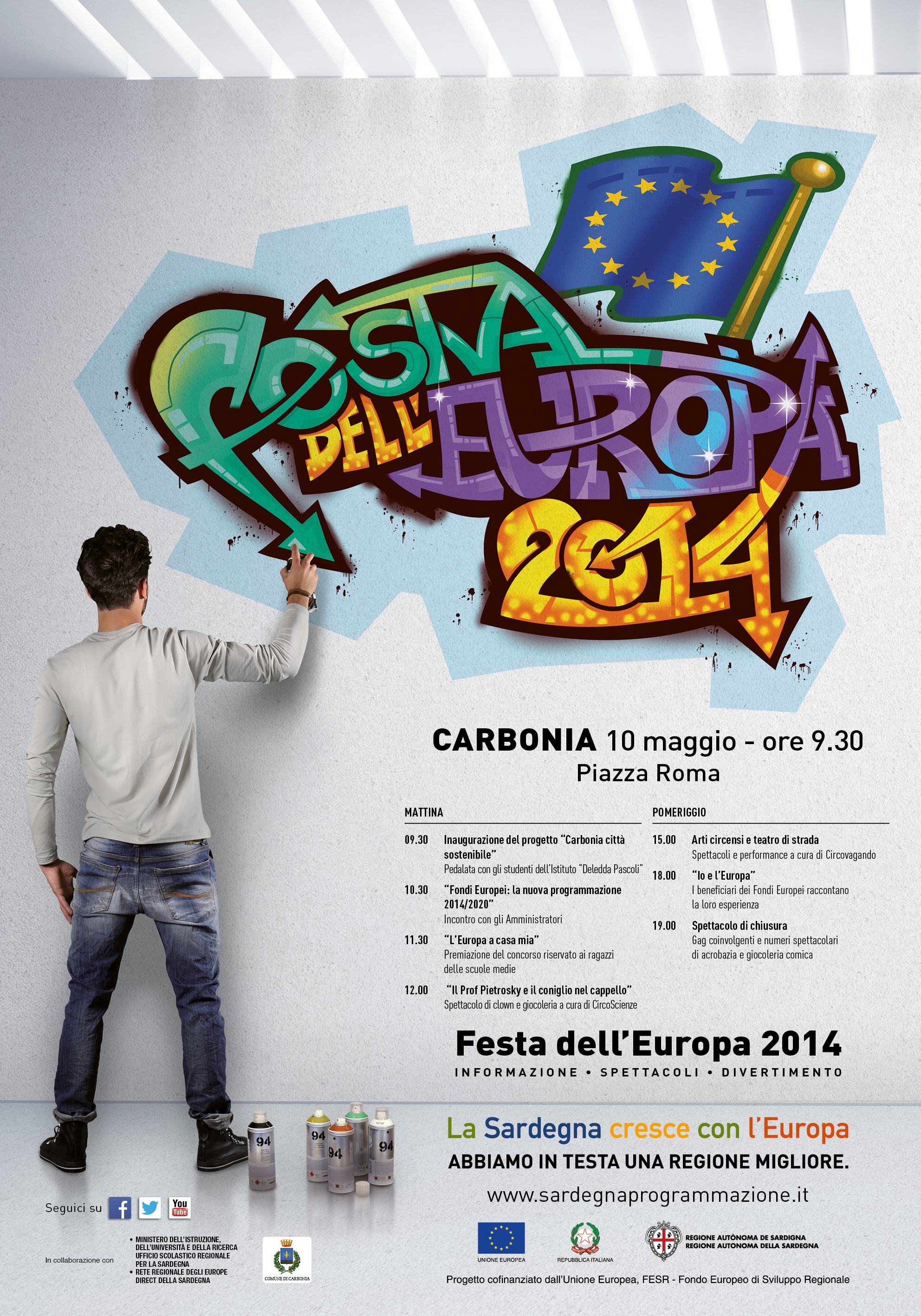 Sabato 10 maggio, alle 9:30 in piazza Roma a Carbonia, si terrà la seconda tappa della Festa dell’Europa 2014, evento itinerante organizzato dalla Regione Autonoma della Sardegna – Centro Regionale di Programmazione – Autorità di Gestione del POR FESR Sardegna 2007-2013, in occasione della Festa dell’Europa 2014, che si celebra in tutta Europa il 9 maggio.
