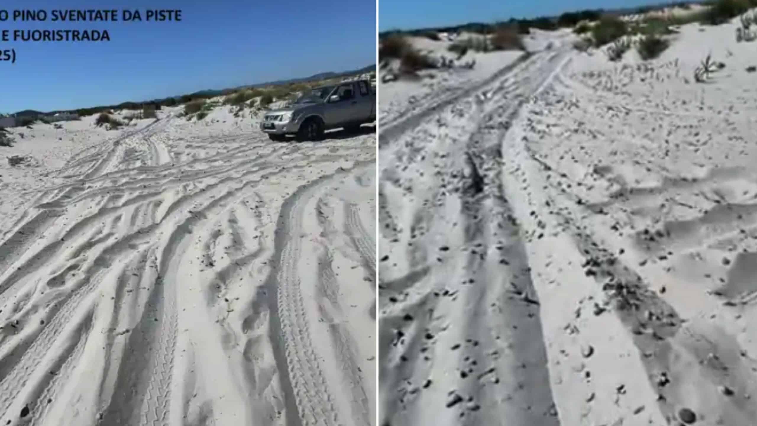 A Porto Pino piste per fuoristrada nel bel mezzo delle dune: la denuncia del Grig. “Preziose banquette di Posidonia (Posidonia oceanica) spianate a colpi di ruspa, per la serie “dell’erosione chi se ne frega“”.