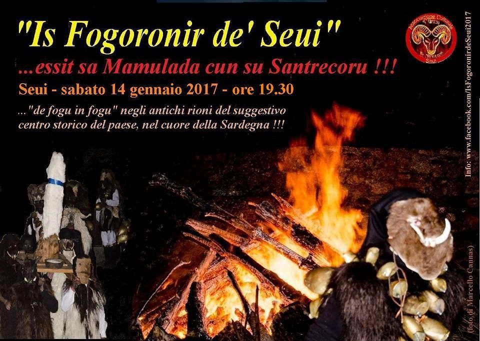 Sabato 14 gennaio, dalle ore 19,30, a Seui, nel magico mondo della Barbagia più impervia, si svolgeranno “is Fogoronis de’ Seui”. Un antico rito intriso di immutate tradizioni, quasi che il tempo non sia trascorso. La maschera tradizionale del paese, s’Urtzu e sa Mamulada porterà in processione su Santrecoru, attraverso un percorso che si snoda per le vie del paese dove, per consuetudine, nei vari rioni vengono accesi grandi falò.