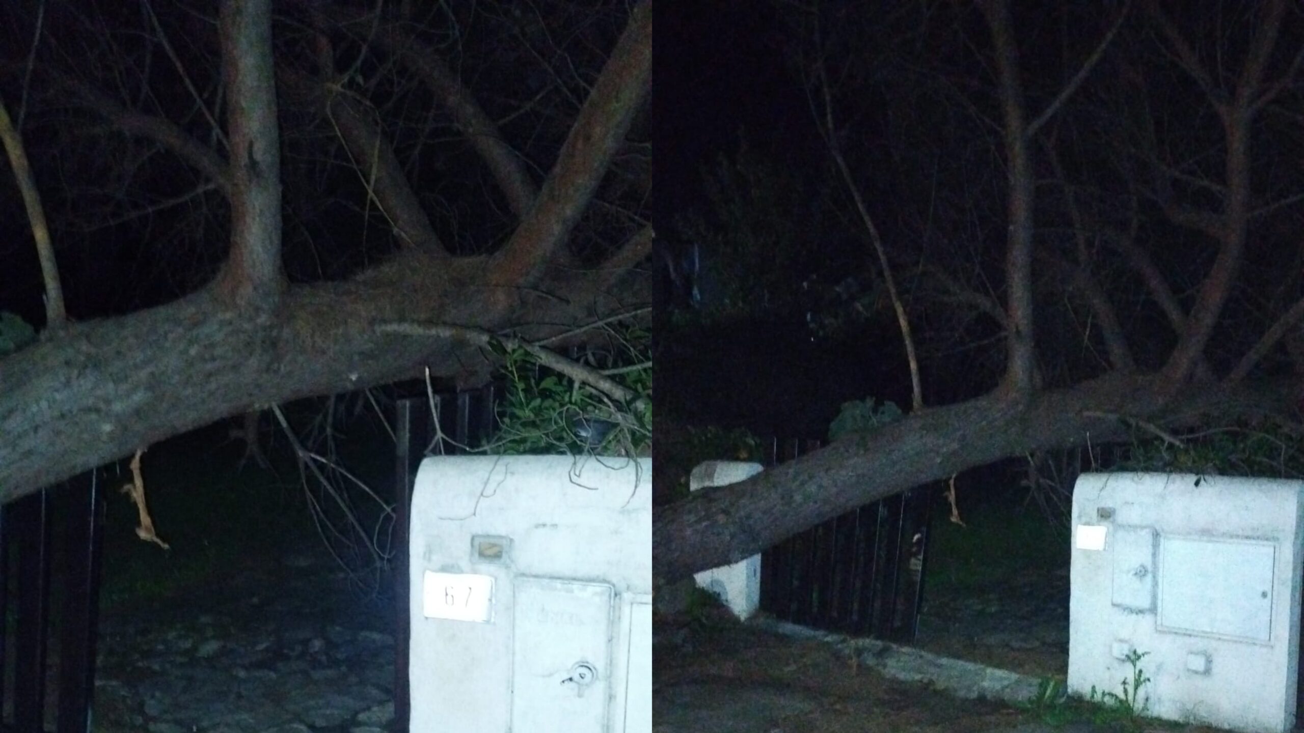 Durante il pomeriggio di due giorni fa uno è crollato sopra una abitazione, dirante la notte scorsa, come dimostrano le immagini, all’ingresso di una residenza. Ingenti i danni, per fortuna non si registrano feriti.