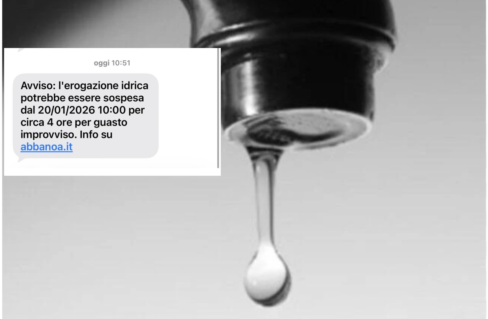 Niente acqua, dunque: Abbanoa ha comunicato l’interruzione con un sms 51 minuti dopo l’inizio dell’emergenza ma ormai era ovviamente troppo tardi per fare scorta di acqua anche solo per cucinare.
