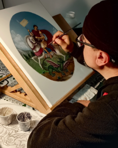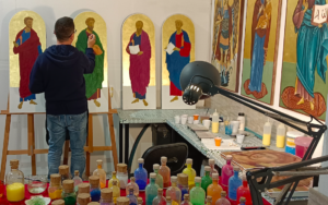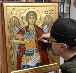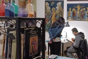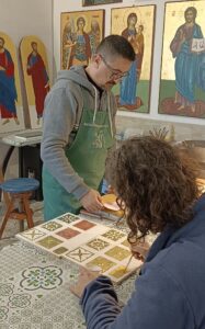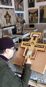 Qui non si utilizzano tecniche o forme d’arte contemporanee: ogni opera viene realizzata secondo la tradizione, con l’impiego della tempera all’uovo, dei pigmenti naturali e del vero oro zecchino. Questa scelta non è solo una questione di stile, ma un atto di rispetto verso l’eredità culturale e spirituale dell’arte sacra. Ogni passaggio, dalla preparazione dei supporti alla stesura dei colori, è eseguito manualmente, con cura e precisione, secondo procedimenti tramandati nei secoli.