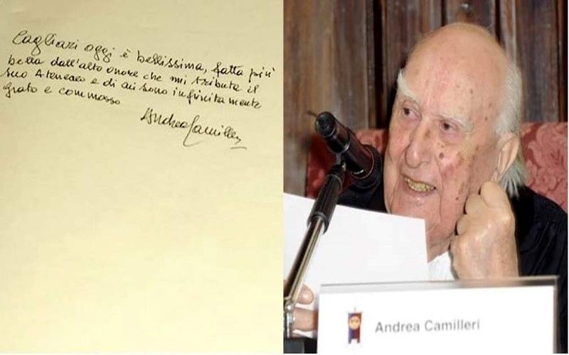 Il dieci maggio 2013 l’Ateneo cagliaritano ha infatti conferito al “papà” di Montalbano la laurea honoris causa. E lui, sul registro degli ospiti, descrisse così la città: “Cagliari oggi è bellissima, fatta più bella dall’alto onore che mi tributa il suo Ateneo e di cui sono infinitamente grato e commosso”.
