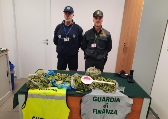 Dieci chilogrammi di prodotti vegetali, quattro chilogrammi di talee e due chili di carne proveniente dalla Cina, sono stati sequestrati dai funzionari dell’Agenzia delle Dogane e Monopoli di Sassari in servizio presso la sede Operativa Territoriale di Alghero e dai militari della Guardia di Finanza.