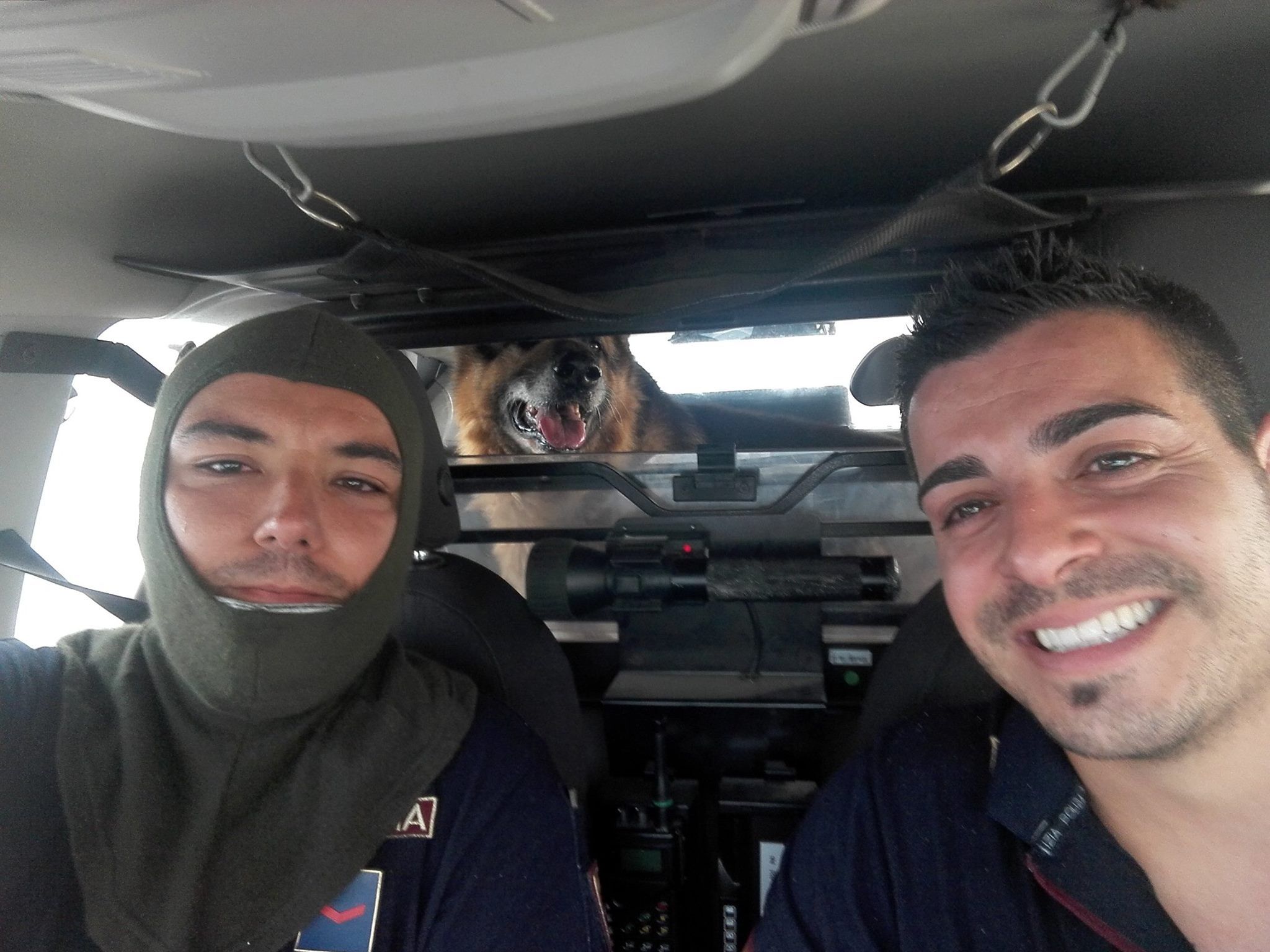 Il tempo di andare al Pronto soccorso e tornare ed Alberto e Alessandro trovano che l’incendio si è esteso ancora, complice il vento e la siccità di quest’anno. La sala operativa li avvisa che è arrivata la telefonata di un’anziana signora che non può uscire da casa per il fuoco vicinissimo. La donna è riuscita a dire poche parole e poi è caduta la linea. I due insieme a personale del 118 e protezione civile arrivati sul posto vanno a cercare di salvarla se sono ancora in tempo e vedono una casa quasi completamente avvolta dalle fiamme. È difficile anche solo entrare al piano terra. Ma c’è poco da pensare e bisogna provare a raggiungerla. Indossano un passamontagna ignifugo prestato dai colleghi della Forestale che ha anche un filtro all’altezza della bocca e usano la macchina per arrivare il più vicino possibile alla casa. Poi passano in mezzo al fumo e al calore e arrivano alla porta. La protezione civile la apre solo grazie all’ascia in dotazione. Il legno divelto lascia spazio alla vista di una signora di 88 anni rannicchiata a terra nei pochi metri ancora non invasi dal fuoco. Vicino a lei il suo cane, Devil, un pastore tedesco impaurito e con la gola bruciata dal fumo che nonostante il nome che gli è stato dato ha poca affinità con il fuoco. Il cagnolone infatti appena vede aprirsi un varco fugge a gran velocità all’aperto rifugiandosi all’interno della volante lasciata al piano terra con le portiere spalancate per facilitare l’ingresso dei poliziotti. La signora intanto viene raggiunta e portata anche lei al sicuro, ma è sotto shock e come sempre accade in questi casi di forte stress emotivo non vuole lasciare la sua casa e i ricordi di una vita, come se le fiamme non l’avessero ormai avviluppata, ma viene fatta salire sull’ambulanza per essere portata in ospedale. Finisco il racconto con una nota che strappa un sorriso. Dopo il salvataggio Devil non ne voleva sapere di uscire dalla volante, dove i colleghi lo avevano ampiamente dissetato e portato lontano da quel luogo infernale. Pensate che la temperatura della macchina era arrivata a segnare 52 gradi. Devil infatti si è convinto a scendere solo quando, fuori dall’ospedale è potuto saltare nella macchina della nipote dell’88enne, che lo ha preso finalmente in carico.