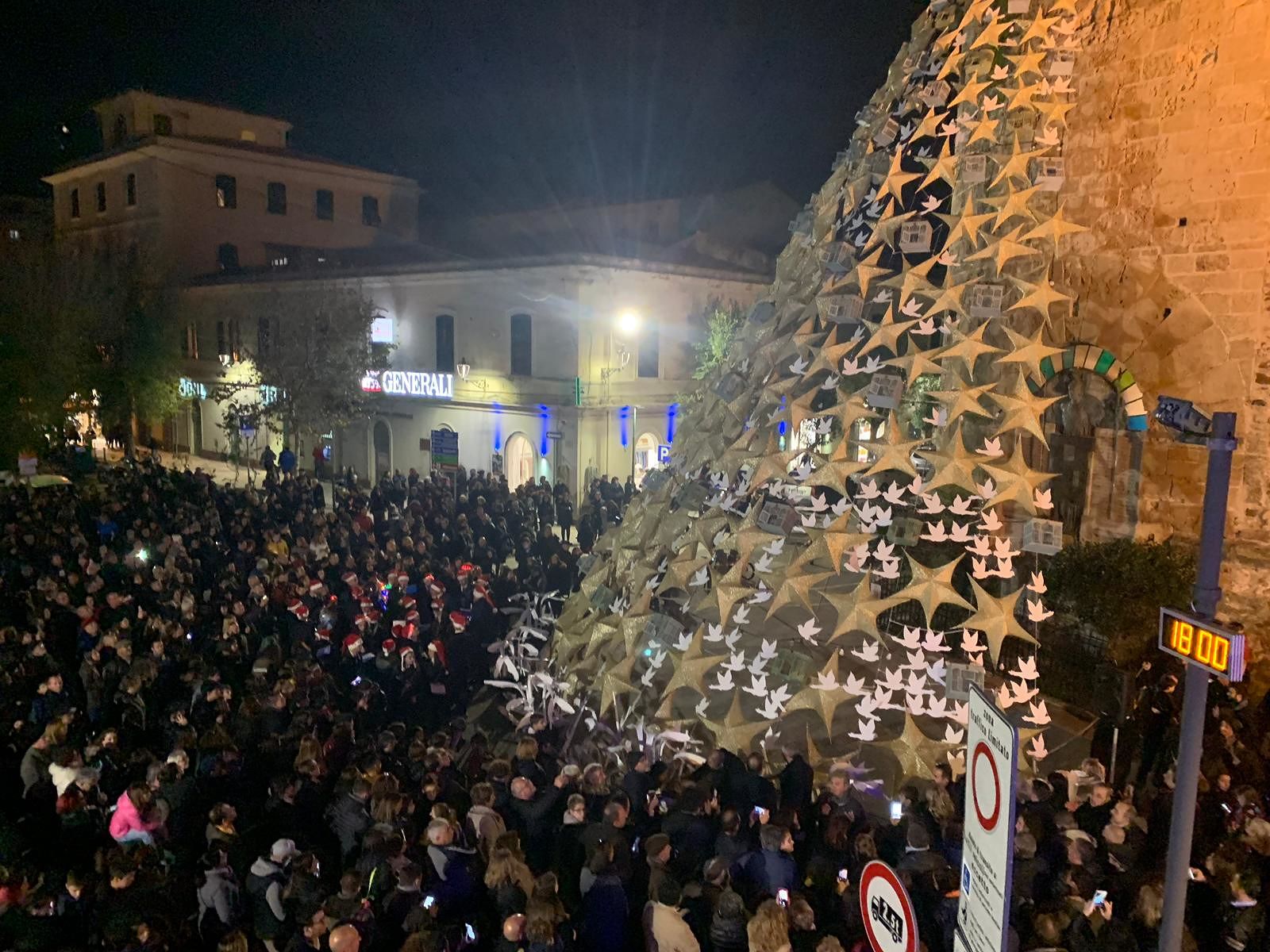 Una piazza da record ha assistito ieri all’accensione dell’Albero di Natale in Piazza Porta Terra per l’avvio degli eventi del Cap d’Any. L’attesa cerimonia, con il classico countdown, ha visto presenziare migliaia di algheresi e tantissimi visitatori. Piazza e vie adiacenti stracolme di gente intorno alla creazione di Tonino Serra e degli studenti del Liceo Artistico F. Costantino. Apprezzamento unanime per l’opera rientrante nel progetto “Paesaggi di Luce”, che già sta simboleggiando la città sui social. Il Sindaco di Alghero Mario Conoci ha voluto ringraziare tutti coloro che hanno contribuito alla sua realizzazione.