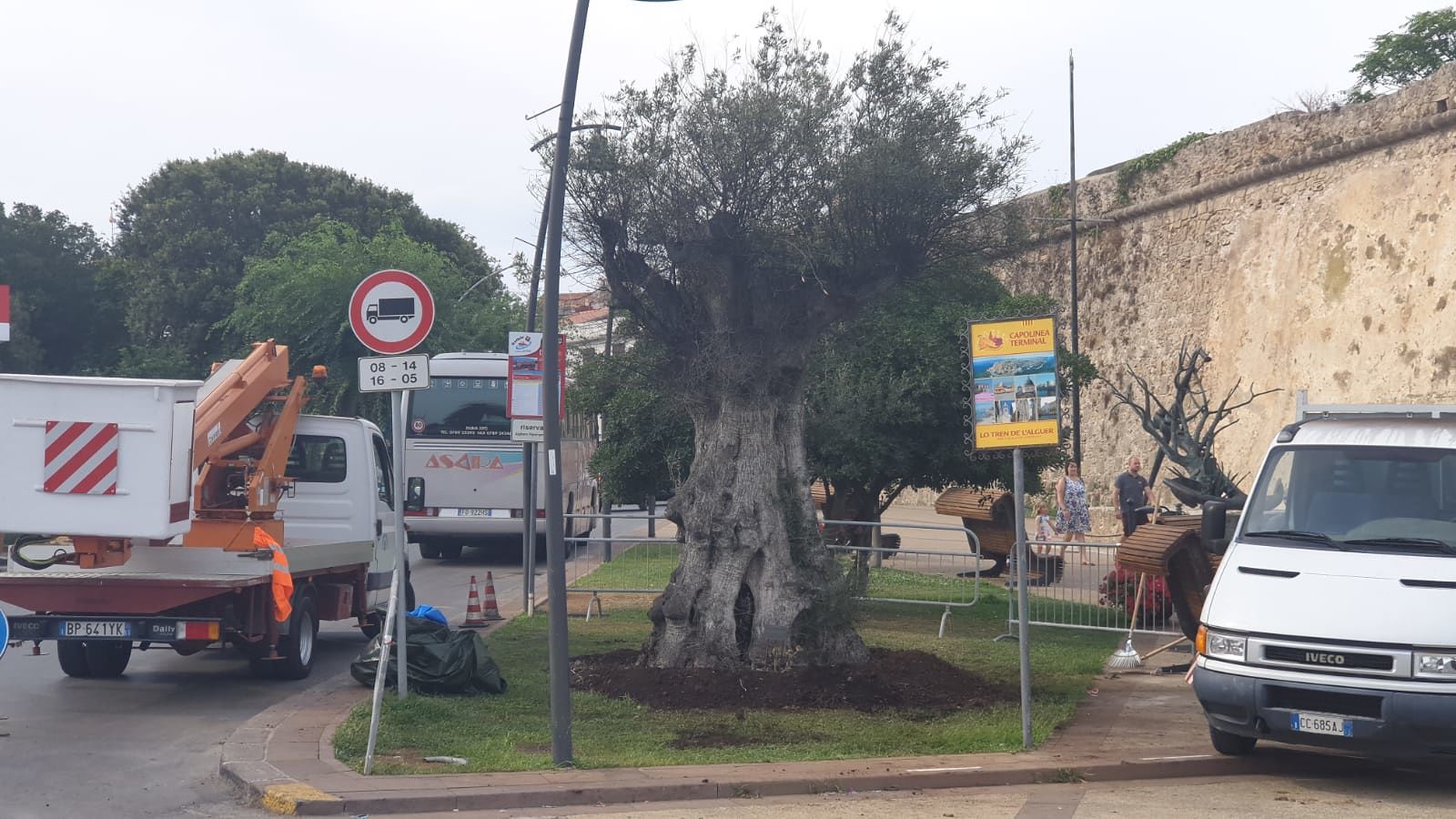Trasferito l’ulivo secolare che dalla via Garibaldi ha trovato sede nella parte iniziale della via Sassari, Scalo Tarantiello.