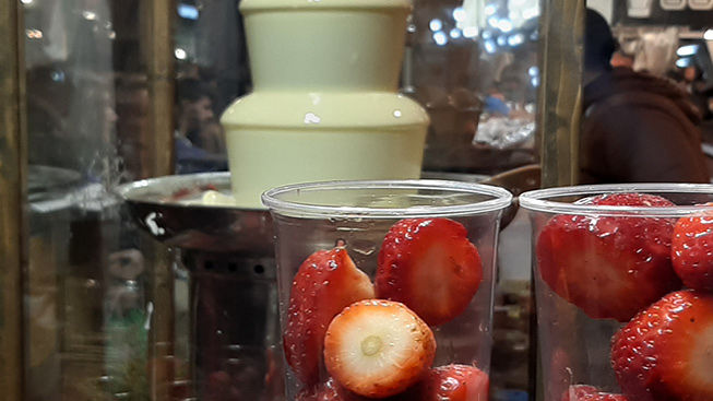 LA VIA DOLCE DEL CIOCCOLATO– Padiglione Gpiano terra al coperto di esposizione con ogni tipo di cioccolato, vin brullè, cioccolata calda, prezzel, waffel, mignon, panettoni di cioccolato e al Pistacchio, muffin, dolci caldi.