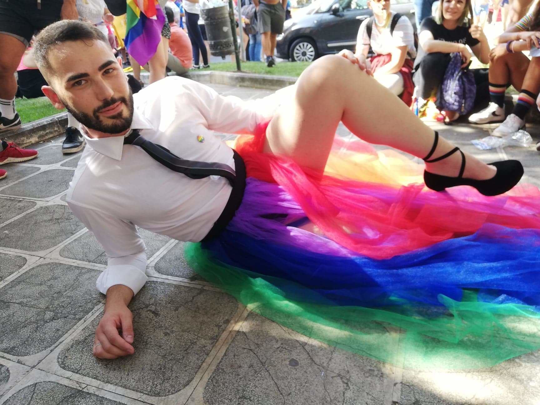 C’è una parte per essere seri e ricordare cosa successe nel 1969 a New York, con i “moti di Stonewall” – il famoso scontro tra polizia e comunità gay dopo la rissa scoppiata in un bar – e una parte festosa e, soprattutto, colorata. Andrea, 21enne di Tortolì, ha partecipato al Sardegna Pride di Cagliari, decima edizione: “La gonna arcobaleno è la prima volta che la indosso, mentre le scarpe con tacco quindici, invece, le avevo già utilizzate”. Studia Scienze della comunicazione, fa il cameriere, il giornalista e in questo periodo è anche indaffarato “con un tirocinio di grafica. Faccio un po’ di tutto”, dice, sorridendo, il ventunenne. La Sardegna, o anche solo Cagliari, sono luoghi omofobi? “Cagliari no, in Sardegna invece c’è più una questione legata alla mentalità chiusa. Tortolì ha undicimila abitanti e solo quest’anno, per la prima volta, il Comune ha accettato la mia richiesta di esporre la bandiera arcobaleno, di questo ringrazio il sindaco e la Giunta”, anche perchè, poi, “si sono aggiunte Villagrande e Lanusei”.