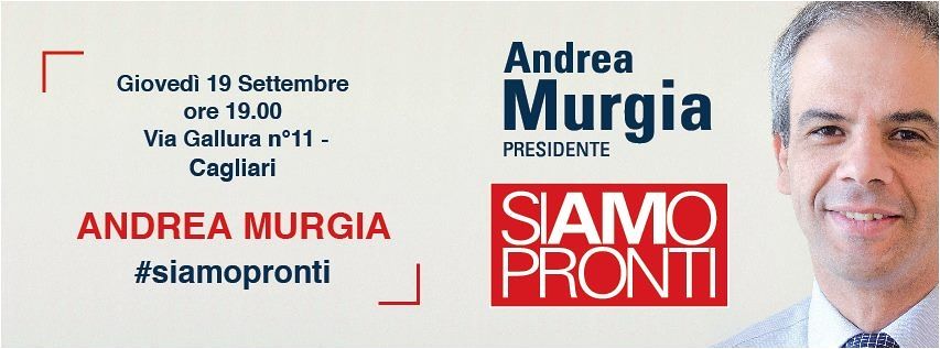 Cagliari-Sardegna-Europa andata/ritorno. L’evento è irganizzato da Giovanni Dore: “Giovedì 19 settembre 2013 Andrea Murgia, candidato alle primarie di centrosinistra per la Presidenza della Regione Sardegna, sarà a Cagliari per raccontarci la sua idea di Sardegna e confrontarsi con le cittadine e i cittadini e tutte le persone interessate. All’evento parteciperanno anche i consiglieri comunali di Cagliari: Giovanni Dore, Matteo Lecis Cocco-Ortu, Marco Murgia e Giuseppe Andreozzi. Perché è nostro dovere saper declinare l’Autonomia della nostra Isola ad ogni livello, nel negoziato con l’Unione Europea e con lo Stato centrale. Il motore del futuro è la conoscenza. Dobbiamo studiare, formarci, migliorarci. Solo così potrà emergere la Sardegna migliore, quella delle competenze, quella della passione. #siAMopronti Siete tutti invitati, vi aspettiamo! Appuntamento: Giovedì 19 settembre alle ore 19:00 Via Gallura 11, a Cagliari Per saperne di più seguici qui: FB | andreamurgiapresidente”.