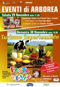 Dalla tarda mattinata, a partire dal pranzo di mezzogiorno e fino alla sera (fino ad esaurimento scorte), spazio alla Festa delle Etnie, una rassegna gastronomica che celebra la diversità culturale e la convivenza armoniosa delle comunità presenti ad Arborea.