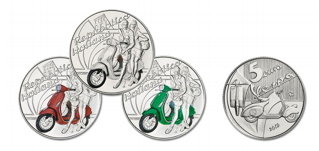 Arriva la nuova moneta in argento da 5 euro realizzata dal Poligrafico e Zecca dello Stato, emessa oggi dal Ministero dell’Economia e Finanze, per celebrare uno dei simboli dello stile italiano tra i più famosi al mondo: la Vespa. Non è un caso la scelta dei colori: il verde, il bianco e il rosso per ricordare il tricolore della bandiera italiana. La moneta, che appartiene alla “Serie Eccellenze Italiane” della Collezione Numismatica 2019, è stata realizzata dall’artista-incisore Maria Carmela Colaneri e prodotta dalle Officine della Zecca di Roma.