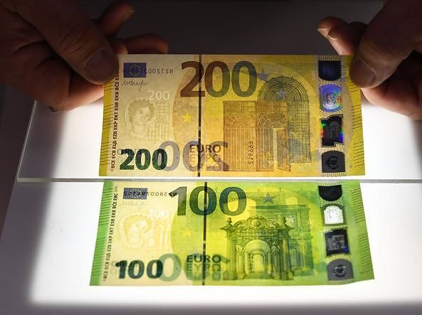 Dopo le banconote da 5, 10, 20 e 50 euro, la Banca centrale europea (Bce) ha presentato oggi a Francoforte i nuovi biglietti da 100 e 200 euro. Le due nuove banconote sono dotate di elementi nuovi e aggiornati ma delle stesse caratteristiche di sicurezza del ‘pezzo’ da 50 euro, come il ritratto nella filigrana e nell’ologramma. A cambiare sono le caratteristiche di sicurezza e soprattutto le dimensioni: ora saranno alte come il 50€ mentre la lunghezza resta invariata. Entreranno quindi più facilmente in un portafoglio di dimensioni standard oltre che facilitare la vita a bancomat e apparecchi per contare i soldi. I nuovi tagli hanno nella parte superiore della striscia argentata un ologramma con “satellite”, ovvero un simbolo dell’euro (€) che ruota attorno al numero. Oltre agli elementi di sicurezza visibili a occhio nudo, le banconote in euro sono dotate anche di caratteristiche di sicurezza verificabili dalle apparecchiature. Sui nuovi biglietti da €100 e €200 queste caratteristiche sono state perfezionate e ne sono state aggiunte altre che consentono di trattare i biglietti e controllarne l’autenticità rapidamente. «Con l’introduzione delle nuove banconote in euro da €100 e €200 l’intera scala dei tagli continuerà a offrire un’efficace protezione dalla falsificazione», ha assicurato Yves Mersch, membro del comitato esecutivo. Il metodo di verifica rimane del resto “toccare, guardare, muovere”, ricorda la Bce. A fine giugno, evidenzia Giovanni D’Agata, presidente dello “Sportello dei Diritti”,circolavano 2,7 miliardi di banconote da 100 contro 2,5 miliardi di biglietti da 10. In termini di valore la banconota da 100 è il secondo taglio più importante dopo quello da 50. Molto più ‘rare’ le banconote da 200 euro, pari ad appena l’1% del totale. Le nuove banconote inizieranno a circolare il 28 maggio 2019.