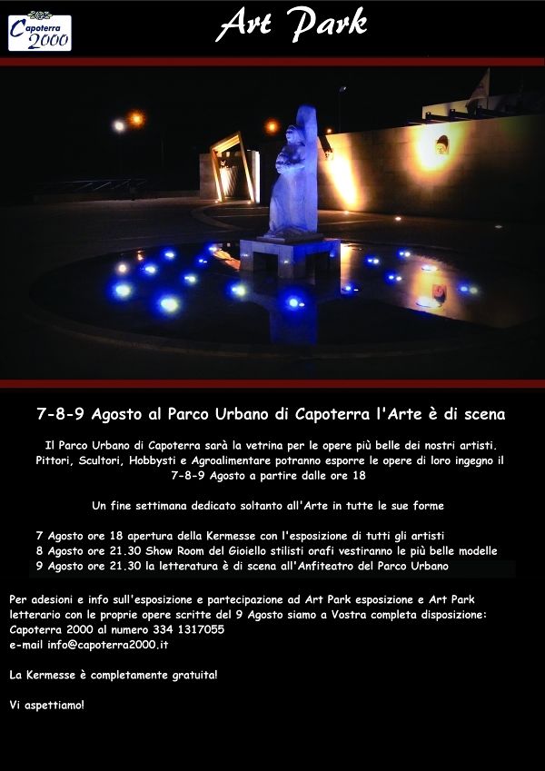 – per info sull’esposizione del 7-8-9 Agosto, partecipazione allo Show Room del Gioiello l’8 Agosto, Art Park