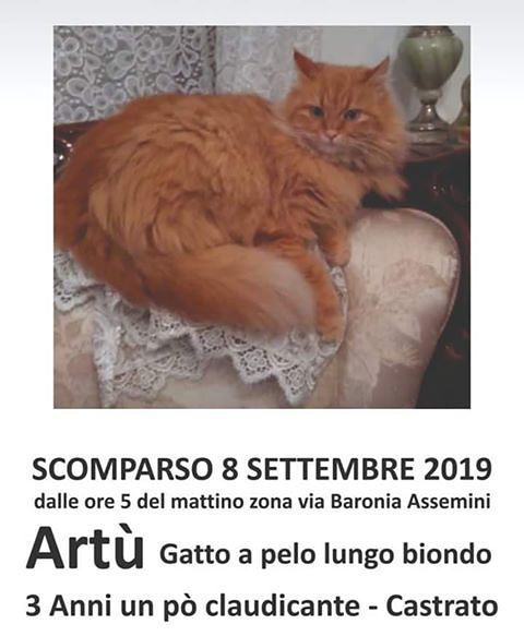 Artù è un bellissimo un gattone, è scomparso l’8 settembre da Assemini e i padroni lanciano un appello: chiunque dovesse avvistarlo può contattare il numero 3472359052.