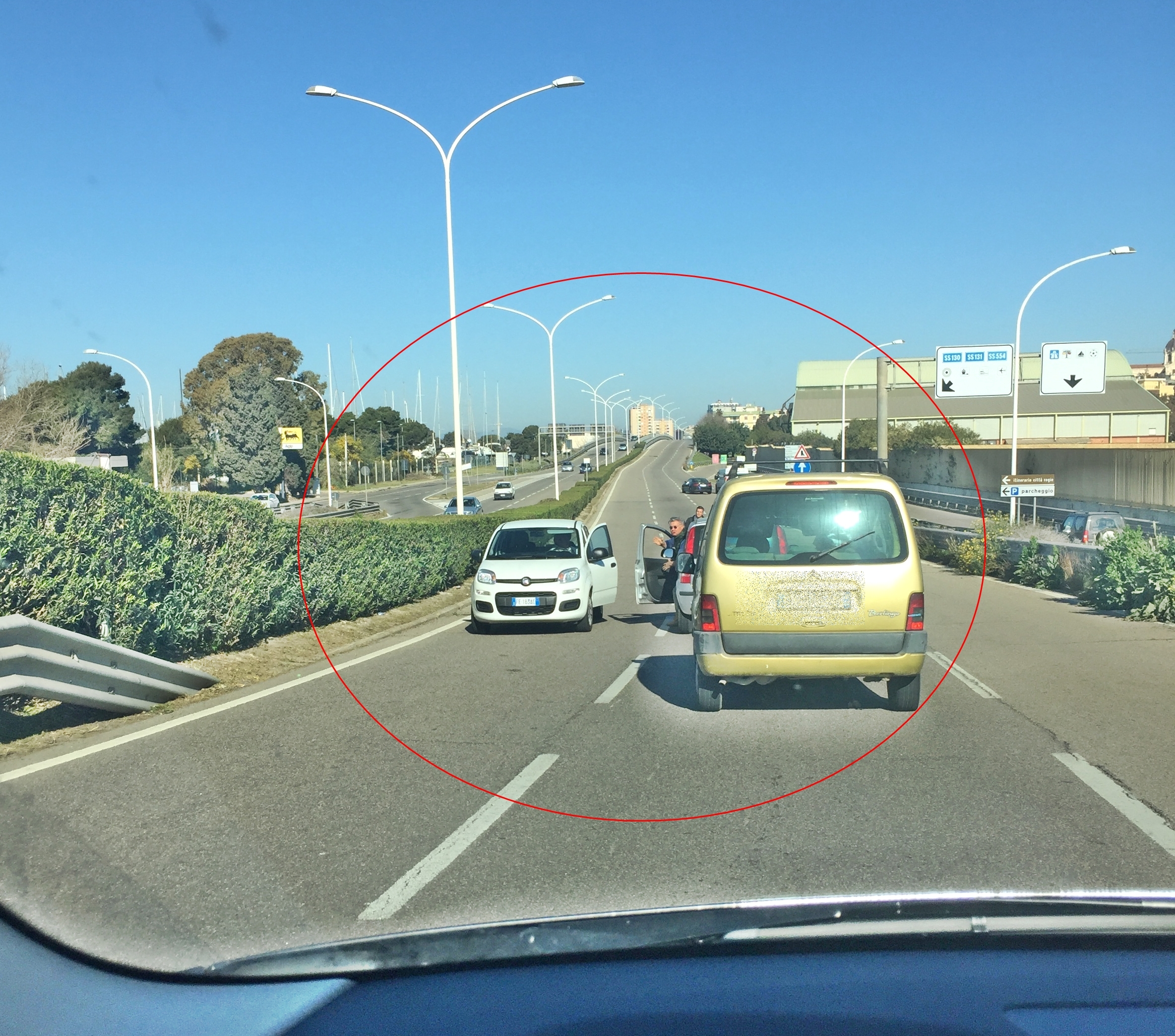 Contromano sull’asse mediano di scorrimento a Cagliari, nuova tragedia sfiorata questo pomeriggio dopo quella di pochi giorni fa nella rampa di via cadello. La foto che vedete è stata scattata dal nostro lettore Carlo Leone: un’auto è entrata contromano nei pressi di viale Colombo, solo per miracolo non c’è stato lo scontro frontale. La vettuira bianca ha imboccato la strada in senso opposto, per la paura e la disperazione degli automobilisti.