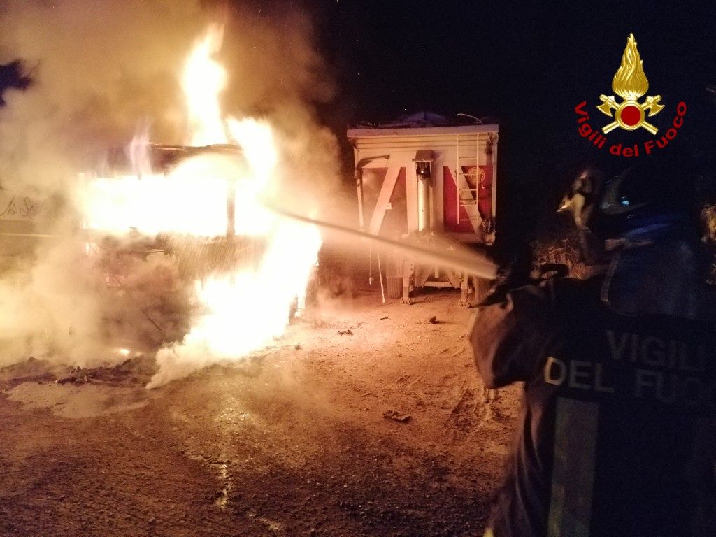 Le fiamme hanno interessato entrambe le motrici che sono state completamente distrutte.