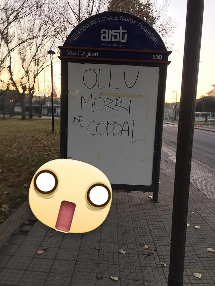 Il “poeta” di Assemini, ecco la scritta con il pennarello che compare per l’Anno Nuovo nella parete della pensilina di una fermata dei bus ad Assemini e prontamente pubblicata da Eros Contu e condivisa viralmente nel gruppo Assemini in Comune. Inevitabilmente decine di commenti ironici dedicati al poeta della città che ha imbrattato, a dir poco volgarmente un arredo urbano.