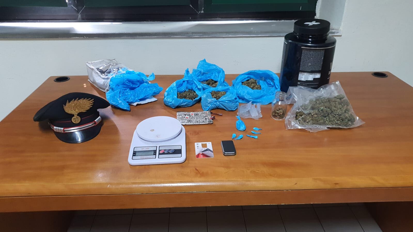 Ieri sera ad Assemini, i carabinieri della locale Stazione hanno tratto in arresto nella flagranza del reato di detenzione ai fini di spaccio di sostanze stupefacenti un 18enne cagliaritano, di fatto domiciliato ad Assemini, con alcune denunce a carico. Attorno alle ore 19,30 i due militari hanno fatto un giro perlustrativo a piedi e in borghese in alcune aree periferiche della cittadina. Giunti in via Sonnino hanno notato dei movimenti strani del giovane che andava avanti e indietro sotto casa. Appreso che il giovane abitava col nonno ultraottantenne nella prospiciente casa con giardino, i militari si sono avvicinati e hanno subito avvertito l’odore aspro e pungente della marijuana provenire da un capanno in lamiera presente nel giardino di casa. I due militari hanno richiesto l’immediato supporto di una pattuglia e consentito al giovane di chiamare un avvocato. All’interno di quel deposito per attrezzi sono stati rinvenuti 332 gr. di marijuana, 5,8 gr. di cocaina, suddivisa in 6 dosi, una bilancia da cucina, un bilancino di precisione e materiale vario per il confezionamento, il tutto sottoposto a sequestro. Si è proceduto quindi all’arresto del 18enne, mentre il nonno non sapeva neppure esattamente cosa fosse la marijuana. Quanto rinvenuto è stato posto sotto sequestro e verrà inviato in mattinata all’Agenzia delle Dogane di Cagliari per le analisi chimiche e tossicologiche. L’arrestato, è stato sottoposto dai militari agli arresti domiciliari in attesa del processo con rito direttissimo che si svolgerà nella mattinata odierna al palazzo di giustizia di Cagliari.