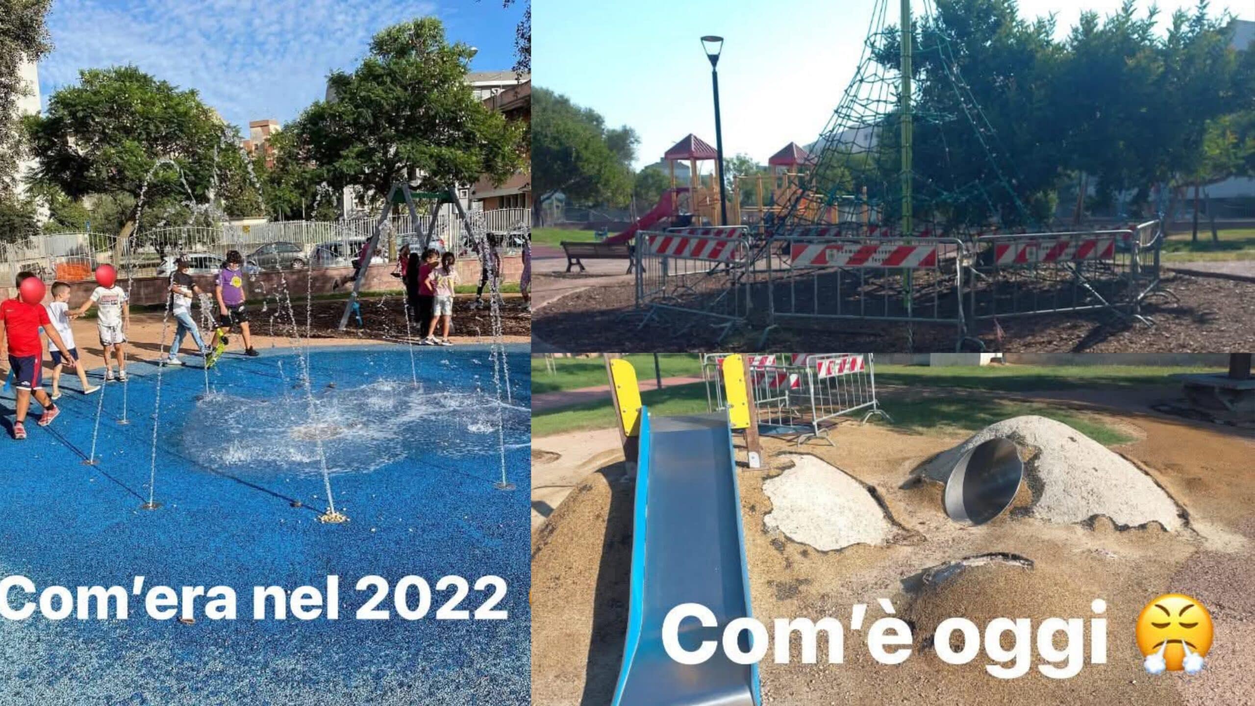 Nel corso degli anni, purtroppo, i vandali non sono mancati e il grande parco è diventato deserto, non più utilizzato dai bimbi che non possono giocare ma solo dribblare i pericoli.