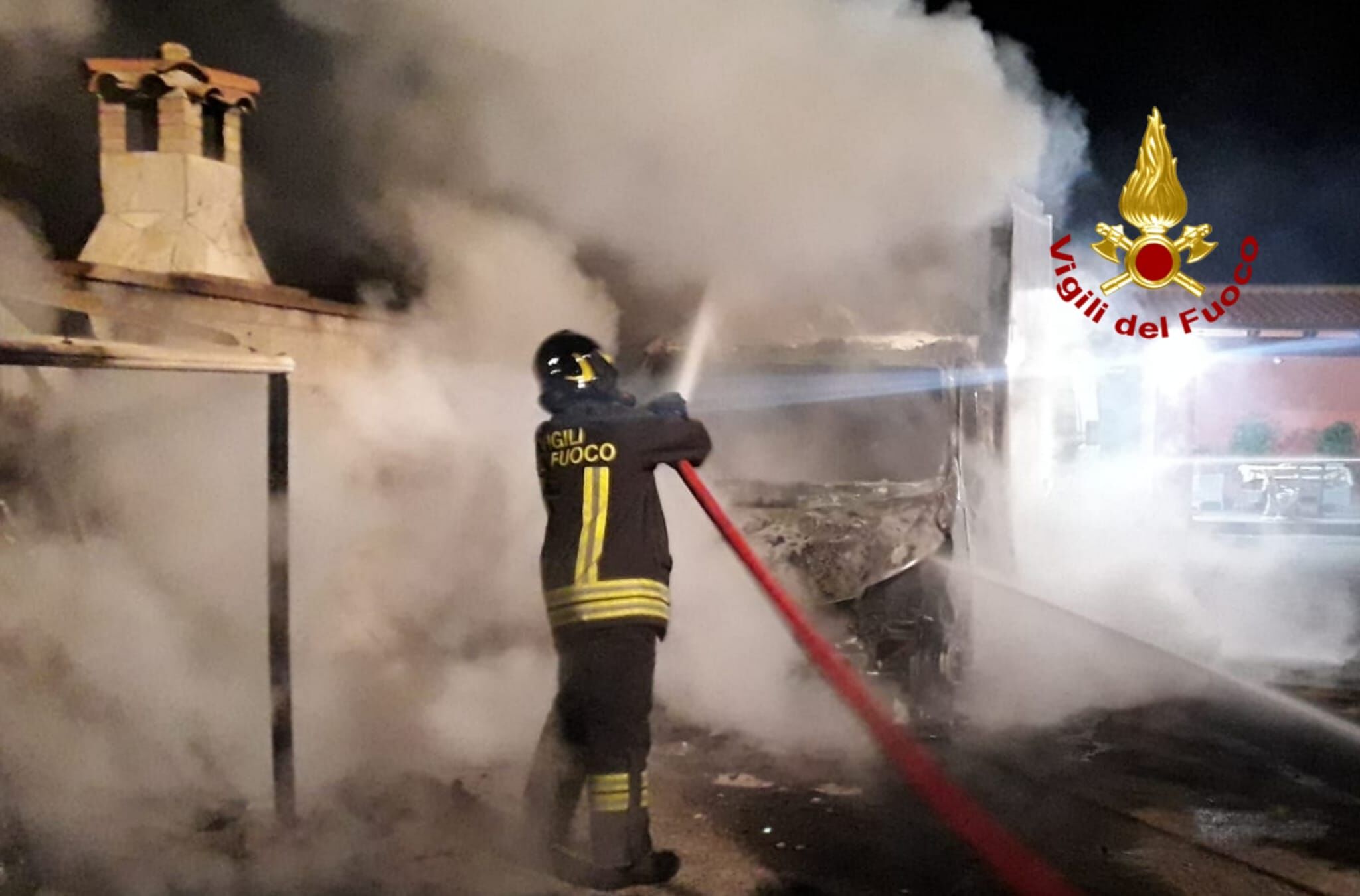 E’ stata inviata una squadra di pronto intervento supportata da un’autobotte e gli operatori giunti sul posto con un’Aps (autopompa serbatoio) hanno spento l’incendio che che ha coinvolto anche il carico dell’automezzo, evitando la propagazione delle fiamme ad altri veicoli in sosta sosta nelle vicinanze.