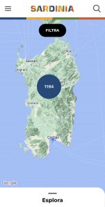 L’utente viene subito invitato a esplorare l’Isola, attraverso una mappa geografica o una visione satellitare, contraddistinte dal numero dei punti d’interesse presenti nel territorio, con una maggiore specificazione a seconda di come si usa lo zoom. La sola area di Cagliari ne conta una cinquantina.