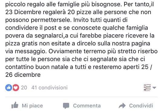 Il regalo di Natale alle famiglie povere di Sestu: pizze in omaggio. Lo annuncia Big Luciano Auriemma, uno dei poizzaioli più conosciuti della Città Metropolitana: “Big Luciano Pizzeria Sestu quest’anno vuole fare un piccolo regalo alle famiglie più bisognose. Per tanto,il 23 Dicembre regalerà 20 pizze alle persone che non possono permettersele. Invito tutti quanti a condividere il post e se conoscete qualche famiglia povera da segnalarci,a cui farebbe piacere ricevere la pizza gratis non esitate a dircelo sulla nostra pagina via messaggio. Ovviamente terremo più stretto riserbo per tutte le persone”.