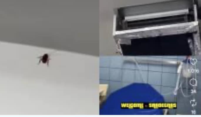 La stanza in questione non sembra ospitare alcun paziente, lascia però l’amaro in bocca notare lo scarafaggio dove proprio non dovrebbe stare, ossia all’interno di un ospedale.