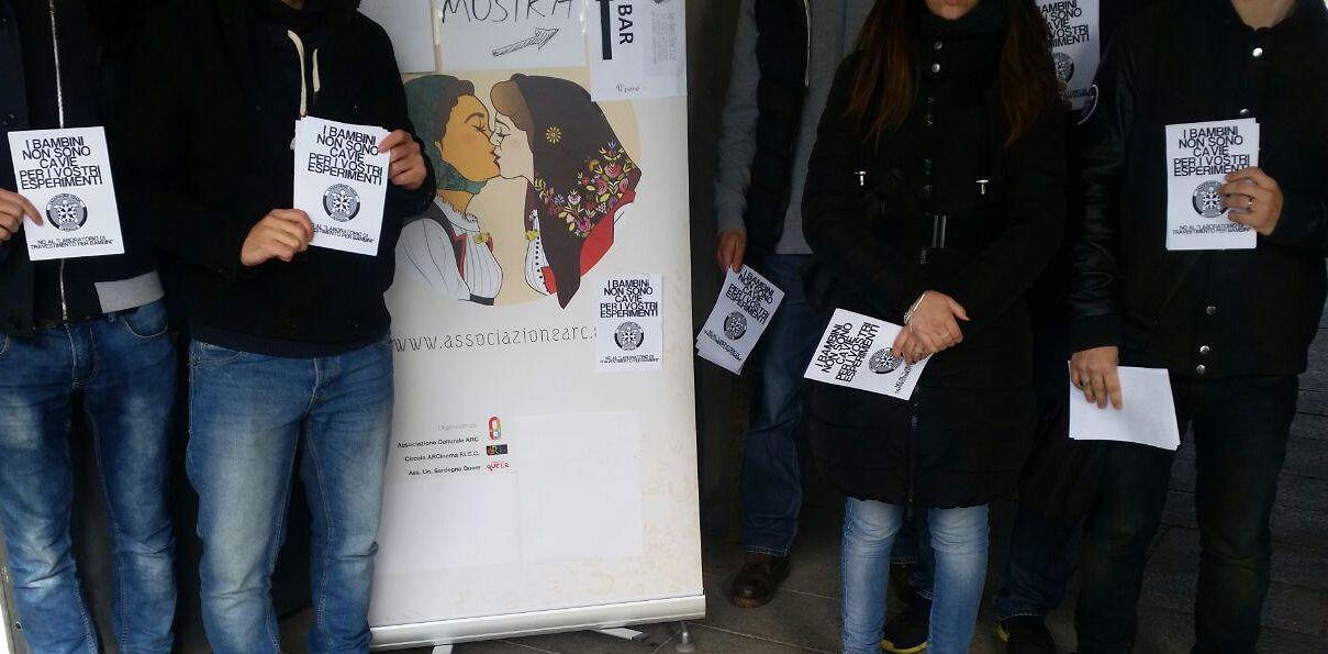 “I bambini non sono cavie per i vostri esperimenti” è il titolo dei volantini lanciati e distribuiti dai militanti di CasaPound durante la manifestazione “le lesbiche si raccontano”, promossa dalle associazioni Arc e Queer Sardegna presso il Lazzaretto, per contestare il “laboratorio di travestimento per bambini” inserito tra gli appuntamenti dell’ evento. Al termine dell’ incursione i militanti hanno distribuito i volantini presso il vicino mercato domenicale di S. Elia.