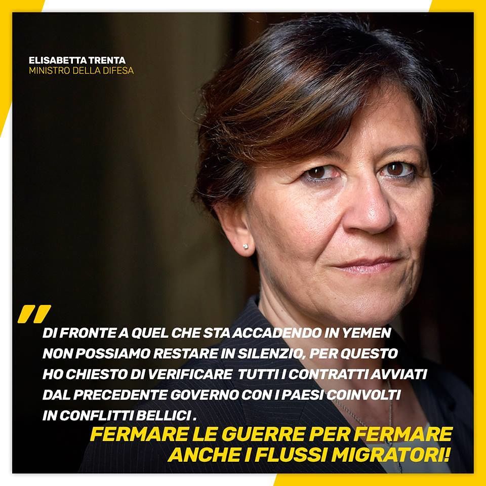 “Oggi in Macedonia e domani in Kosovo, ma ci tenevo a comunicarvi una cosa importante”, ha scritto su facebook la Trenta, “come sapete sono una persona che prima di parlare preferisce studiare e prendere contezza dei problemi nel loro complesso. È un mio modo di essere e ne vado fiera. Ma davanti alle immagini di quel che accade in Yemen ormai da diversi anni, non posso restare in silenzio. Se lo facessi, sarei un’ipocrita.