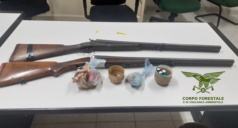 Intorno alla metà di luglio il personale del Reparto, in servizio di controllo del territorio, ha individuato delle armi occultate in località Murta Sterria, nel territorio alle pendici dell’Oasi dei Sette Fratelli. Si trattava di due fucili da caccia calibro 12 con matricola abrasa, armi clandestine da impiegare per attività di bracconaggio.