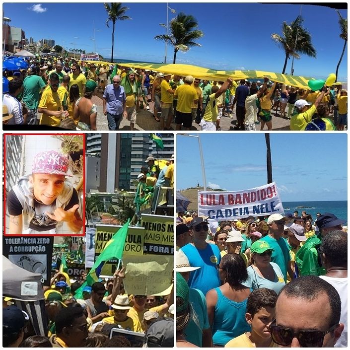 Direttamente dal Brasile, Davide D’Elia (un sardo che da anni ci vive e lavora, lo chiamano “Il Gringo do Samba”, ma è un cagliaritano doc), ha seguito per noi con una video-intervista il popolo sceso in piazza: «La popolazione brasiliana ieri è sceso in strada per manifestare contro quello che i cittadini considerano il governo peggiore degli ultimi tempi. Il presidente del Brasile Dilma, ha potuto constatare quanta disapprovazione a poco tempo dal voto. San Paolo, Brasília, Rio de Janeiro, Salvador de Bahia e tante altre città hanno colorato la città un vero e proprio carnevale di protesta. Milioni di cittadini al grido di fuori Dilma e fuori il PT (partito dos Trabalhadores) i governi prima di Lula e poi di Dilma appoggiata da Lula stesso hanno visto la corruzione dilagare. E poi il caso Petrobras una delle aziende più grande al mondo dissanguata con un valore in borsa pari a poco più di un dollaro. Noi Italiani cosa aspettiamo a manifestare contro quello che rappresenta una dittatura vera e propria, la terza presidenza del consiglio senza che il popolo possa decidere. Prendiamo esempio dai milioni di brasiliani che ieri hanno cominciato e continueranno fino a che il governo di Dilma non cadrà».