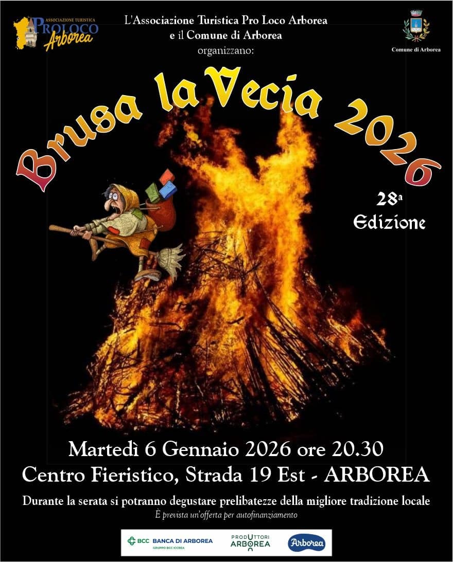 Arborea rinnova uno degli appuntamenti più identitari e sentiti del proprio calendario comunitario. Martedì 6 gennaio 2026, in occasione della Festa dell’Epifania, si terrà la 28ª edizione della “Brusa la Vecia”, tradizionale evento promosso dall’Associazione Turistica Pro Loco Arborea in collaborazione con il Comune di Arborea.