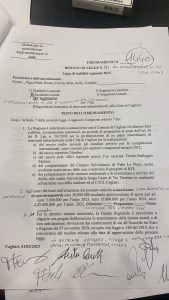 Cinquanta milioni spalmati su 4 anni per garantire al Cagliari il nuovo stadio “secondo gli standard previsti per le competizioni internazionali, entro i termini per ospitare i campionati europei 2032” è la prima voce che si legge nell’accordo di programma tra Regione e Comune. Dove, non c’è scritto: Sant’Elia è il luogo più gettonato, ma nel documento non se ne parla. E la Regione, per sganciare i soldi (3 milioni nel 2023, quindici nel 2024, 12 nel 2025 e gli ultimi venti nel 2026) stando all’emendamento, chiede che il Comune firmi l’accordo di programma che prevede, anche, la costruzione del nuovo ospedale cittadino, sempre a Cagliari: e i punti dove poterlo realizzare sono due, o Su Stangioni (interventi lunghi di messa in sicurezza permettendo) o nell’area della Fiera, tra viale Diaz e piazzale Marco Polo. Un piano di interventi straordinario che, in più di un caso, ha il cemento come collante: nello stallaggio Meloni, in viale Trieste, dovranno essere realizzati nuovi uffici regionali. In via Trentino “potenziare le strutture residenziali e di ristorazione a servizio del diritto dello studio universitario in continuità con la casa dello studente e il Cus” e, nel nuovo campus di viale La Playa, “il completamento anche con l’acquisizione di aree delle ferrovie”.