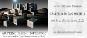 L’ Assocazione culturale “Lumen” celebra il ventennale della sua attività nelle storiche sale del Castello di San Michele, con una mostra di altissimo profilo che spazia dalla pittura alla scultura, proseguendo per l’ arte digitale, la fotografia, l’arte orafa e della tessitura per giungere infine alla prosa ed alla poesia.