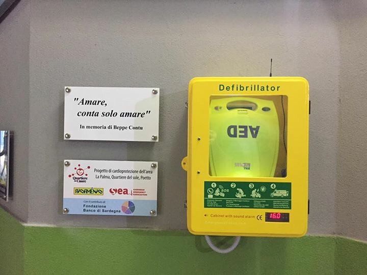 È stato inaugurato nel Quartiere del Sole il primo defibrillatore pubblico h24. L’iniziativa è stata battezzata “il quartiere del Cuore”. Si tratta di una postazione situata in via del Pozzetto 9, nel centro commerciale Le Terrazza accanto alla Pizzeria “Mamo Pizza” della quale, il proprietario Mimmo è uno dei promotori. Una targhetta fissata nella parete accanto al Defibrillatore recita: “Amare, conta solo amare. In memoria di Beppe Contu”. Una iniziativa di cardioprotezione del quartiere del sole, La Palma e Poetto resa possibile grazie all’intervento della Fondazione Banco di Sardegna.
