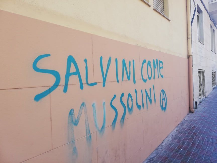 “Salvini come Mussolini”, e poi la “A” cerchiata, simbolo degli anarchici. Ennesima scritta contro il ministro dell’Interno, proprio a pochissimi giorni dalla sua ultima visita a Cagliari. Stavolta, a farne le spese è stato un muro, ridipinto da poco, in via Tempio, nel rione storico di Villanova. Nessuna telecamera nelle vicinanze, impossibile dunque risalire all’autore o agli autori del gesto.