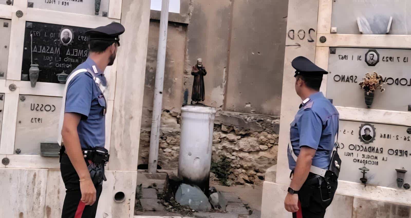 Bruttissimo atto vandalico nel cimitero cagliaritano di San Michele. Il personale addetto ha allertato le forze dell’ordine dopo essersi accorto che ignoti avevano incendiato una piccola statua di San Pio collocata all’interno del camposanto.