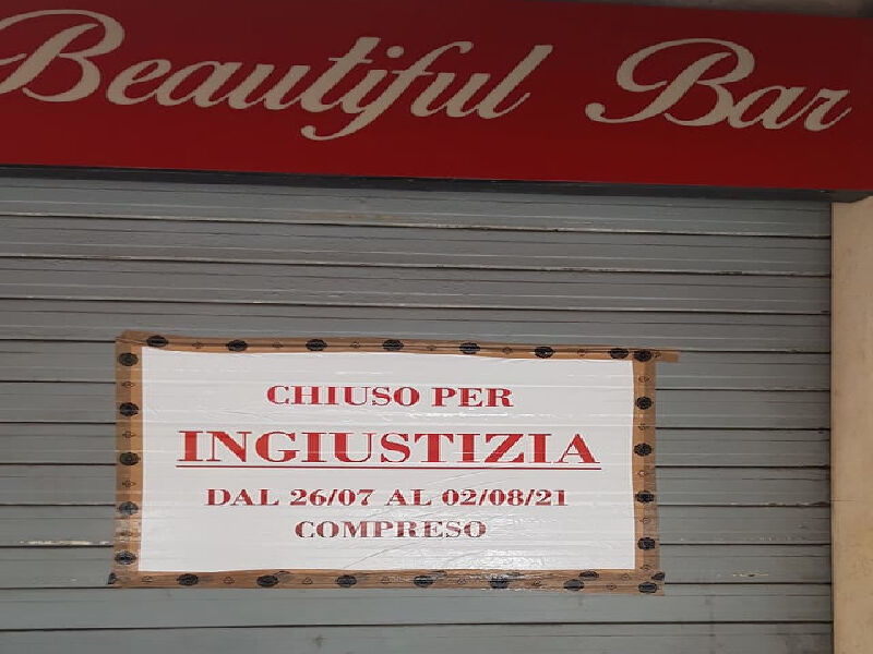 Il maxi cartellone attaccato sulla serranda l’hanno già visto migliaia di persone. “Chiuso per ingiustizia dal 26/07 al 02/08/2021 compreso”: è questa la scritta fatta dai titolari del “Beautiful bar” di viale Bonaria a Cagliari. Anna Paola Medda e Vincenzo Porru, marito e moglie, lo gestiscono dal 2015. Gli affari sono sempre andati abbastanza bene, sino all’avvento del Covid. Lockdown e chiusure in modalità ping pong per tanti mesi hanno fatto crollare gli affari: “Calo del 50 per cento, rispetto al 2019 abbiamo avuto mancati incassi, nel 2020, per settantamila euro”, spiega la Medda. Che, così, ha deciso, insieme al marito-socio, di piazzare alcuni tavolini sul marciapiede. Senza, però, chiedere nessuna autorizzazione: “So di aver sbagliato, era un’occupazione abusiva anche se cinque tavoli non davano davvero fastidio a nessuno. Avevo incaricato un architetto di presentare la domanda al Comune, all’inizio ho tentennato perchè il costo di un libero professionista per la presentazione della richiesta di autorizzazione non è certo basso. In altri Comuni basta una richiesta fatta con un progettino, disegnato dallo stesso barista. Se non va bene viene il tecnico comunale, senza ricorrere a un tecnico, da quello che so. Ho piazzato il cartello con la scritta ‘chiuso per ingiustizia’ perchè non penso di essere una ladra o una delinquente. Quei cinque tavoli non li ho certo messi per diventare miliardaria, ma per sopravvivere”.