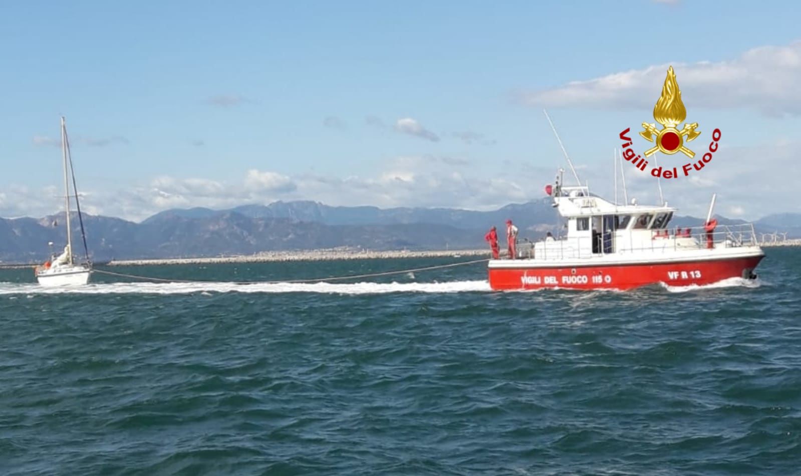 A bordo una sola persona, un tedesco, già portato a terra. Gli operatori dei Vigili del Fuoco, dopo aver disincagliato la barca mettendola in sicurezza, la stanno rimorchiando verso il porto di Cagliari.